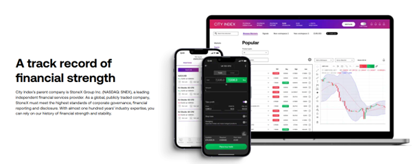 City Index, part of StoneX Group (NASDAQ: SNEX), is a veteran of the trading industry with over 40 years of experience. Offering CFDs, spread betting, forex, shares, and commodities, it provides multiple platforms including WebTrader, MT4, TradingView, and a mobile app for UK traders.