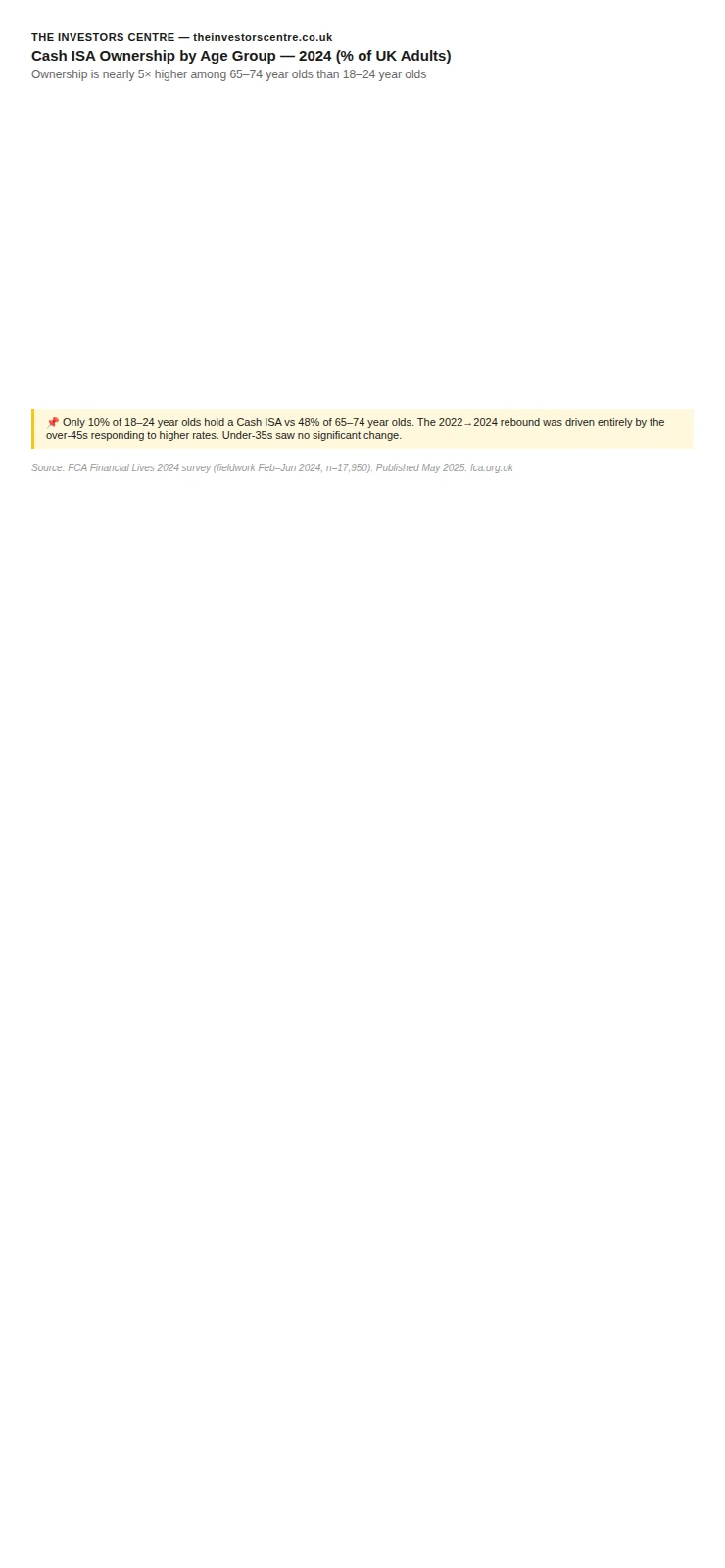 | Age Group | % Holding Cash ISA (2024) | Change vs 2022 | Significance |