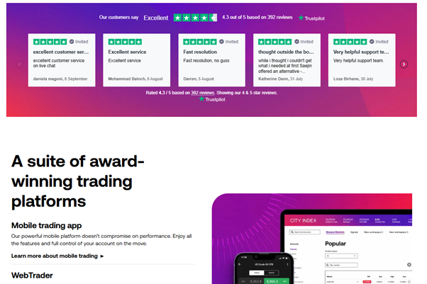 | City Index | Strong regulation, tight spreads, advanced platforms (MT4, web, mobile), flexible accounts | Slightly higher learning curve for beginners |