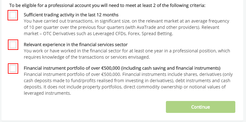 The FCA requires you to meet at least two of three criteria: (1) 10+ significant trades per quarter over four quarters (typically €50,000+ notional), (2) financial instrument portfolio exceeding €500,000, or (3) 1+ year professional experience in the financial sector. Brokers will request documentation to verify eligibility.